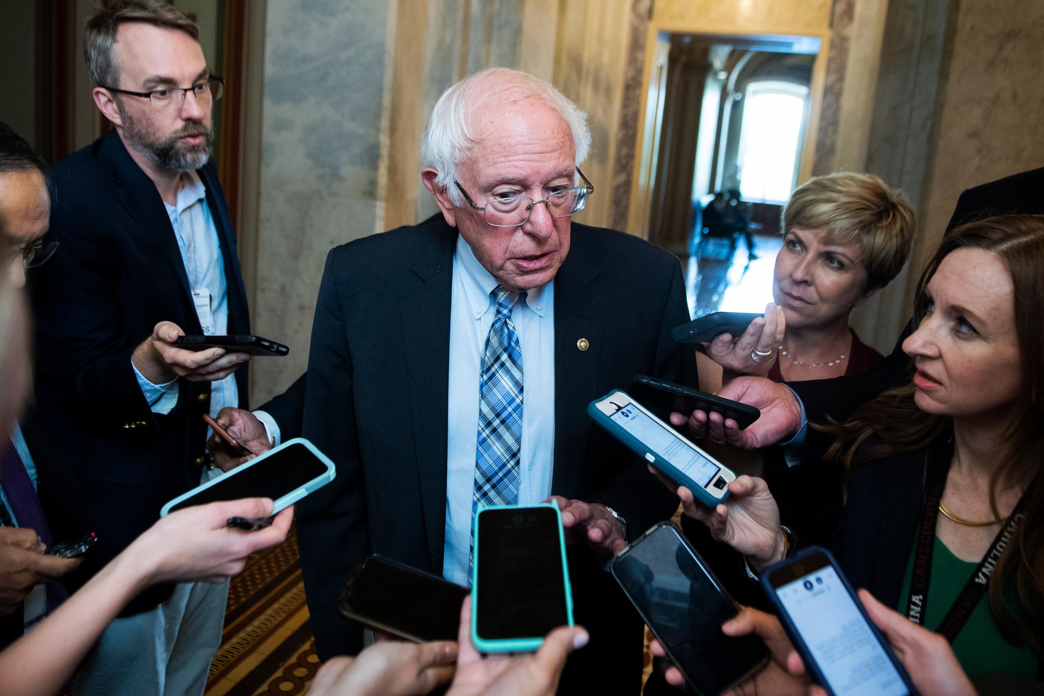 Sen. Bernie Sanders speaks to reporters