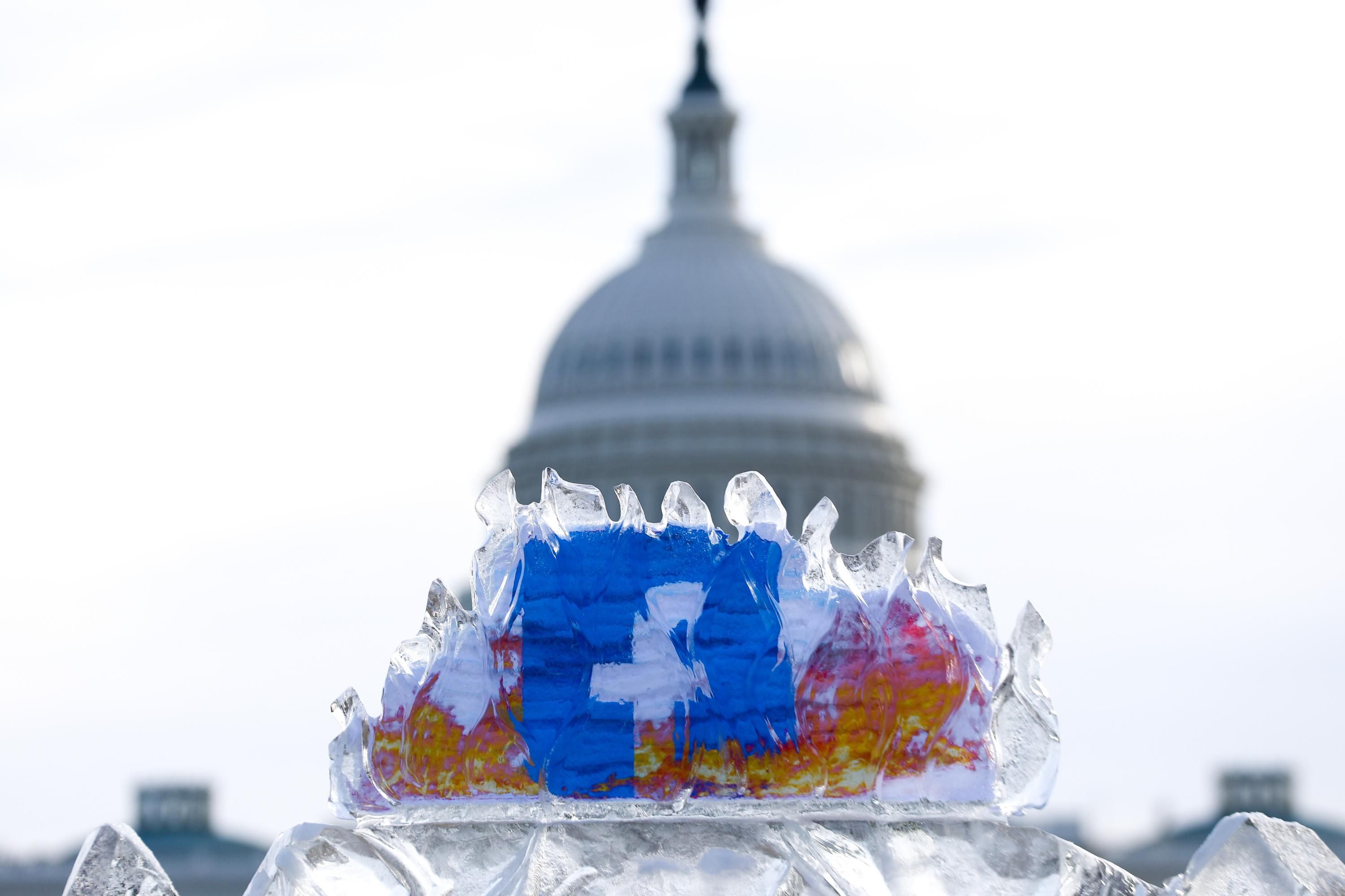 On Thursday morning, SumOfUs organizers placed a 5,000-pound block of ice in front of the U.S. Capitol along with signs imploring Congress to "stop Facebook from destroying our planet."