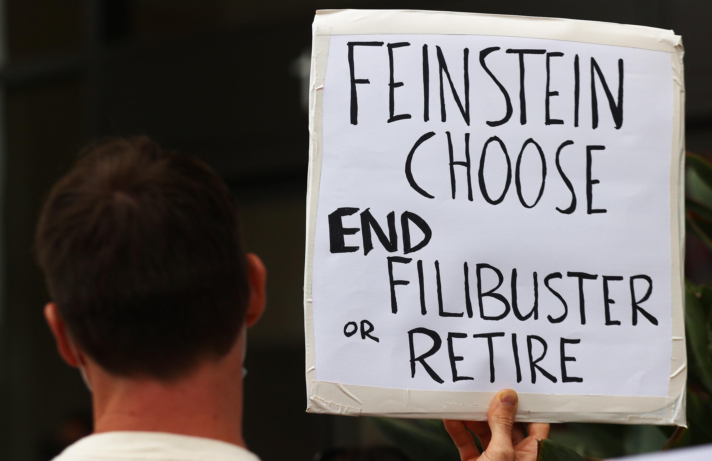 Feinstein said in a statement earlier this year that she's open to reforming the filibuster and acknowledged that Republicans have abused the 60-vote rule to "prevent votes on important bills." But in the same statement, the six-term senator said she doesn't "want to turn away from Senate traditions."