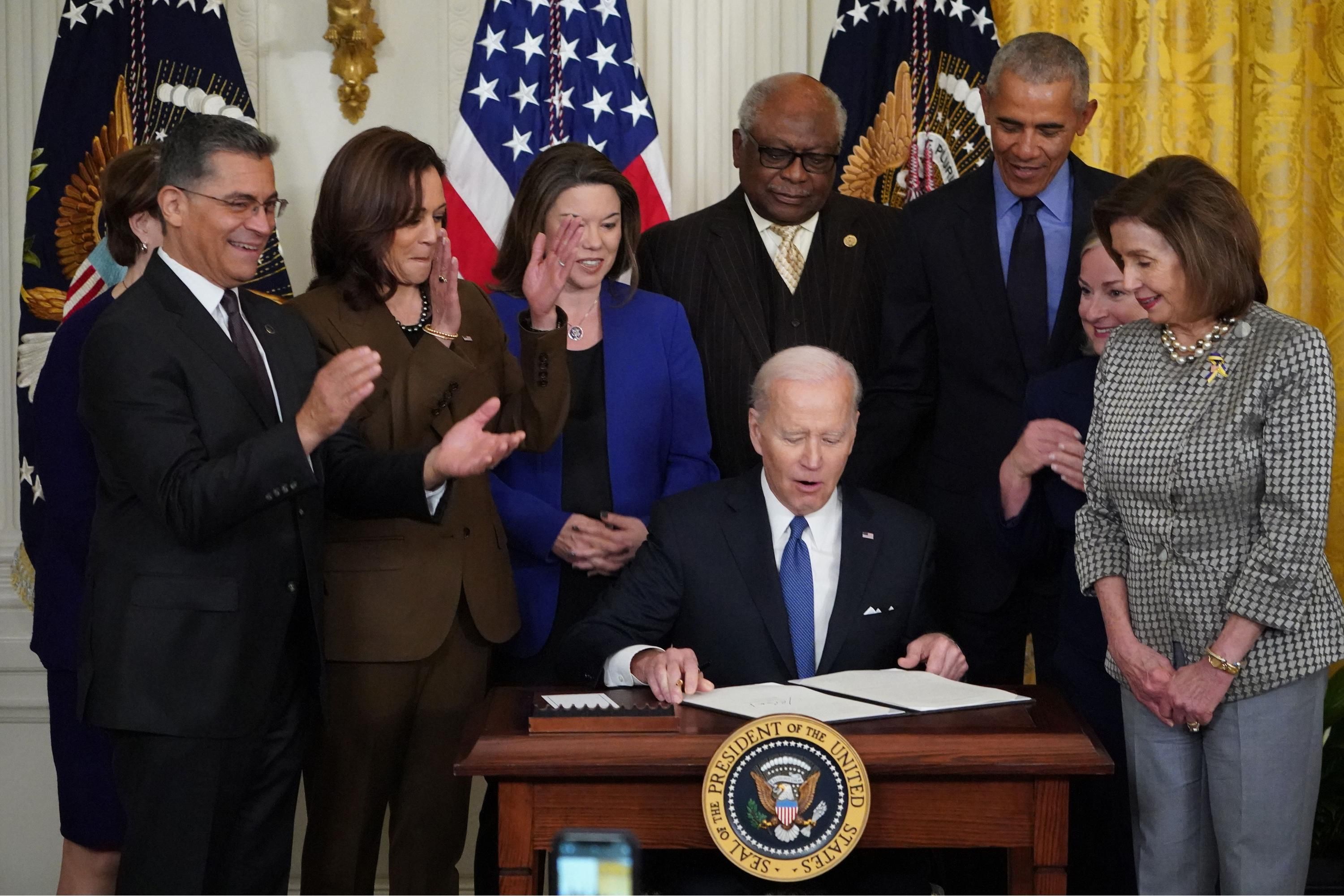 House Speaker Nancy Pelosi (D-Calif.) (far right) attended an event with President Joe Biden, Vice President Kamala Harris, and other administration officials on April 5, 2022, two days before testing positive for the coronavirus. At least 67 people who attended the Gridiron Club dinner on April 2, including at least three members of Biden's Cabinet, have also tested positive. (Photo: Mandel Ngan/AFP via Getty Images)