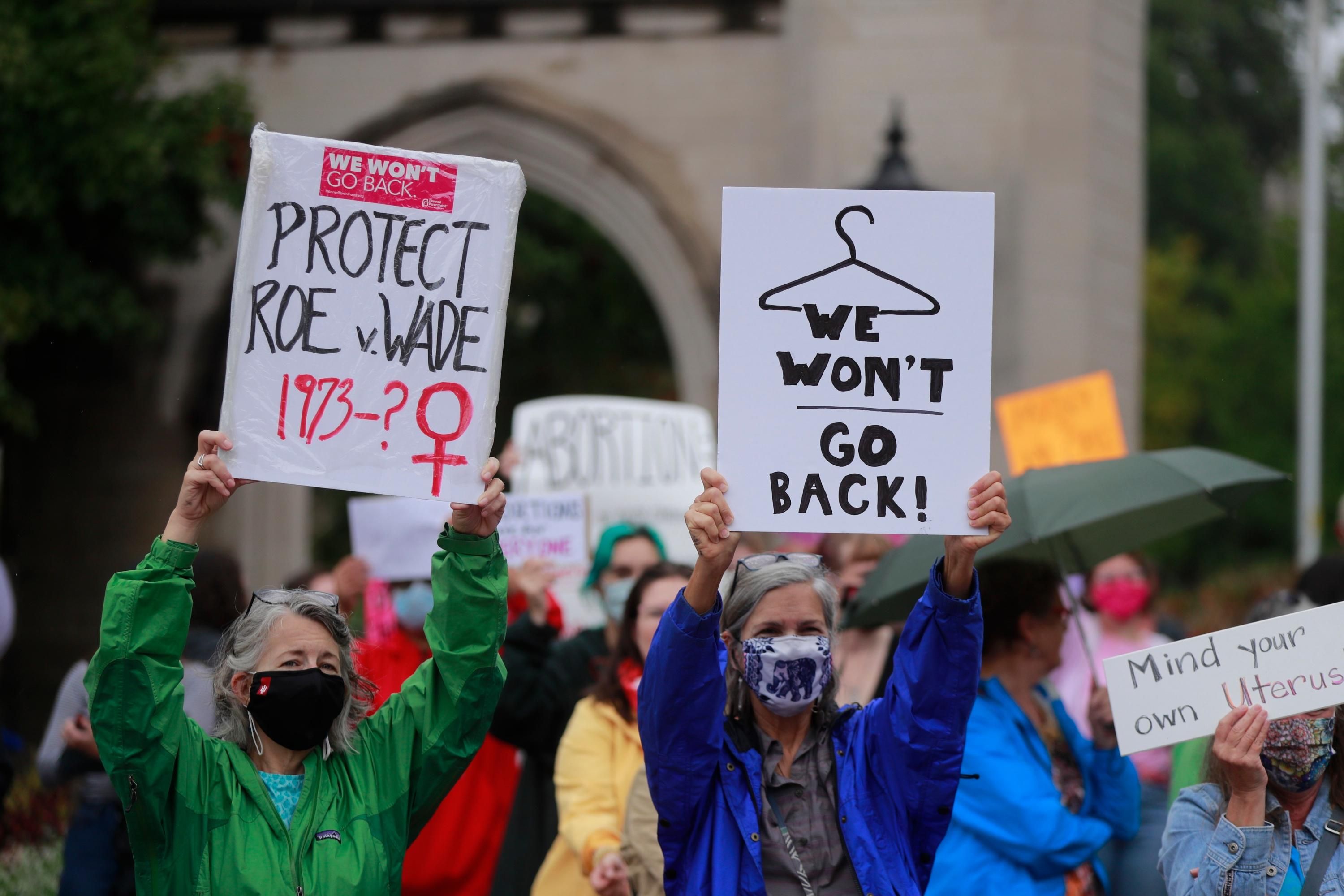 Demonstrators opposed to Texas' abortion ban rally in Bloomington, Indiana as part of a wave of national protests. (Photo: Jeremy Hogan/SOPA Images/LightRocket via Getty Images)