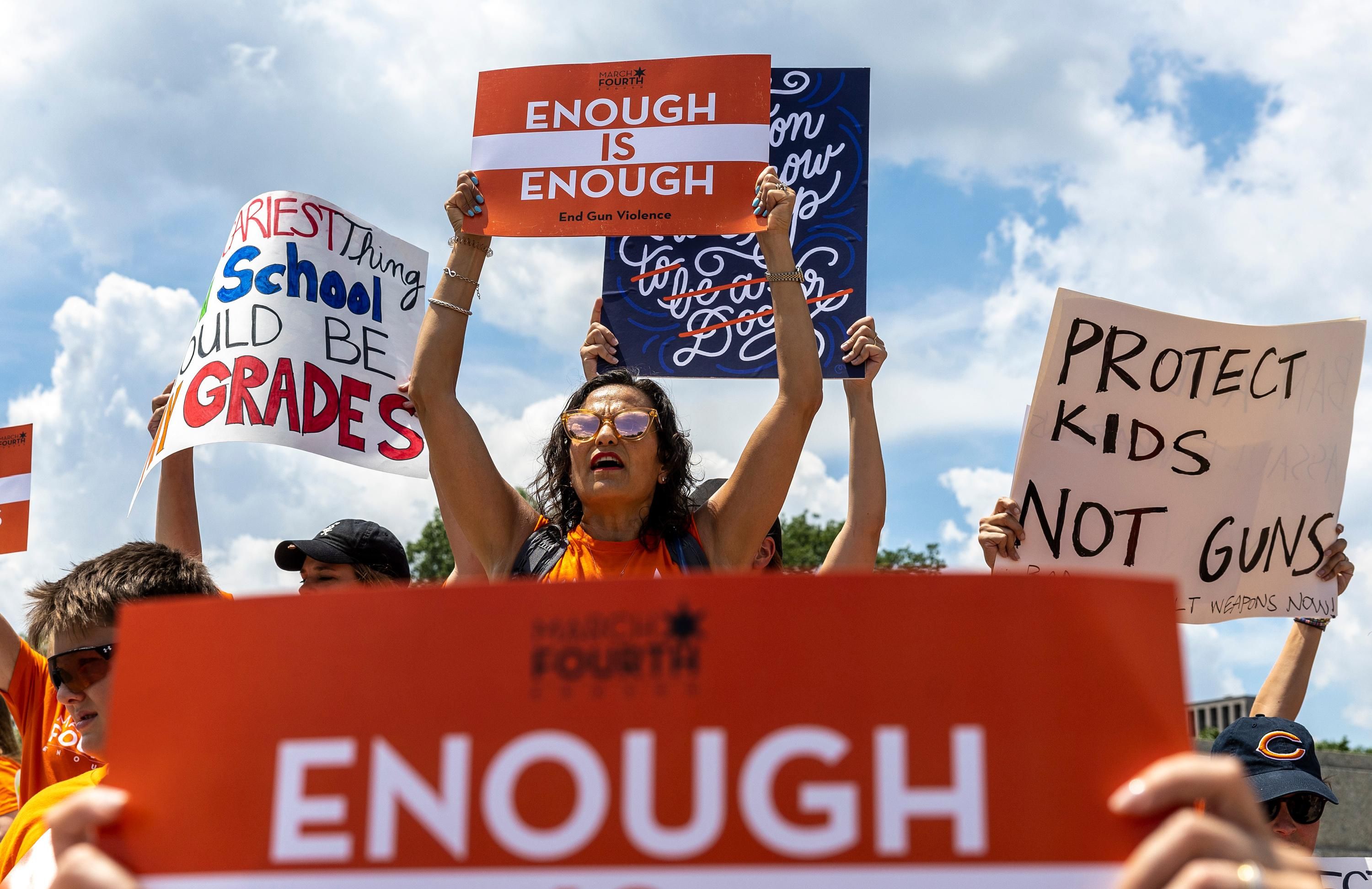 Gun control activists rally near the U.S. Capitol calling for a federal ban on assault weapons on July 13, 2022 in Washington, DC. (Photo: Kevin Dietsch/Getty Images)