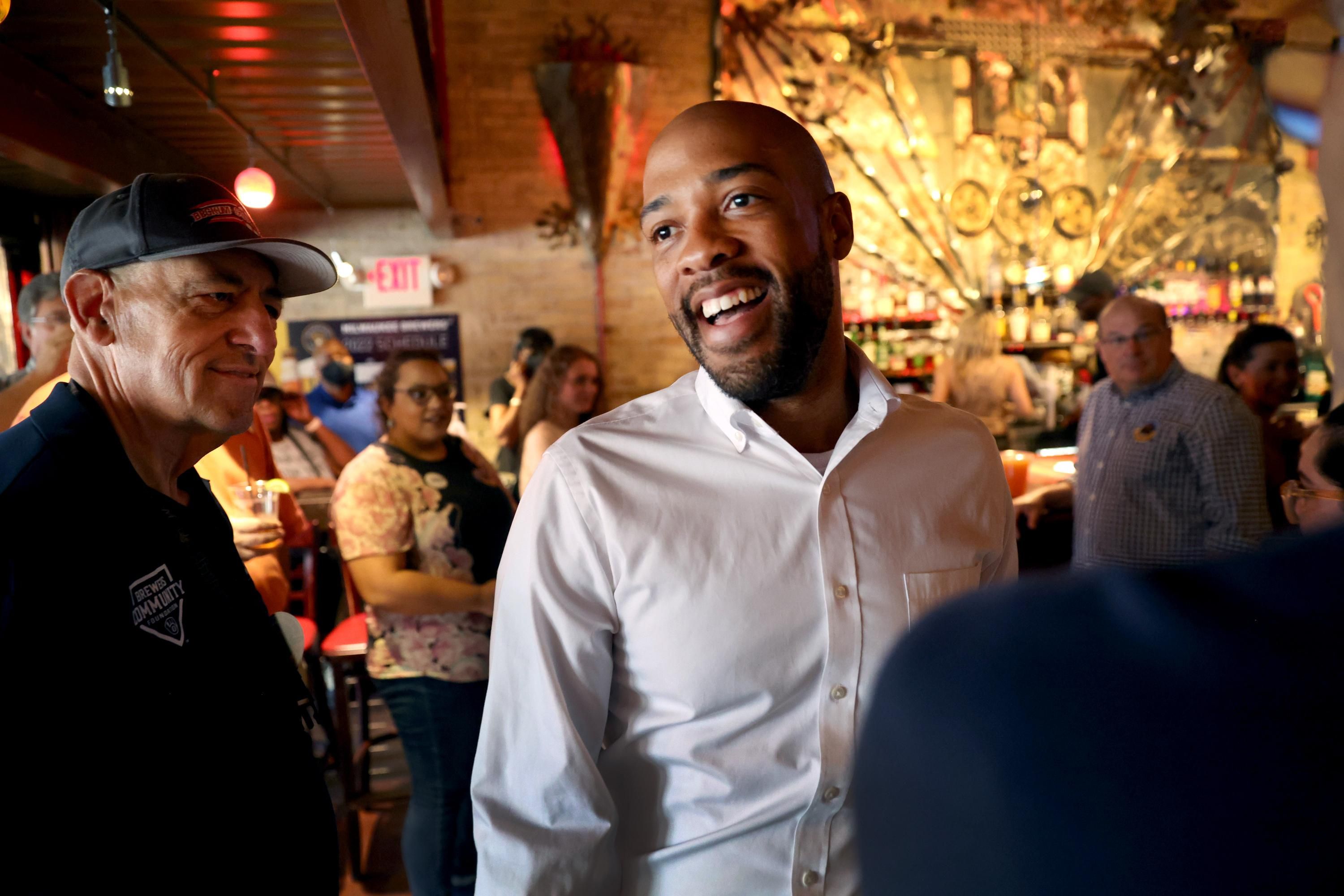 Wisconsin Lt. Gov. Mandela Barnes greets guests at a campaign event