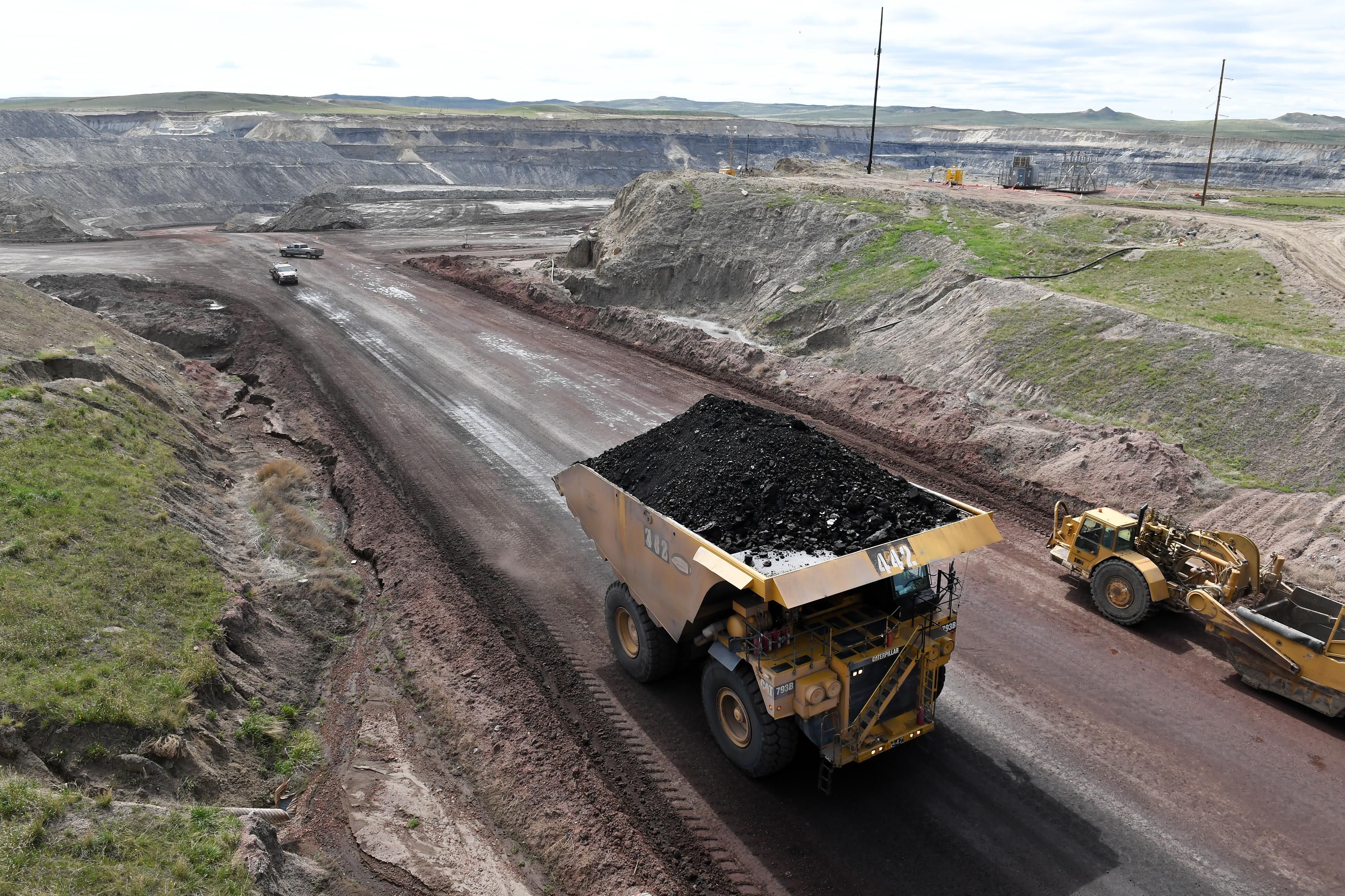 A truck loaded with coal is viewed at the Eagle Butte Coal Mine, which is operated by Alpha Coal, on May 8, 2017 in Gillette, Wyoming.