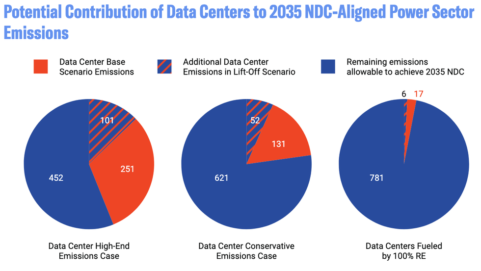 Specifically, the report shows that "the projected AI surge, set to be powered primarily by fracked gas, could account for 10% of the economy-wide emissions and 44% of the power sector emissions allowable to meet the US 2035 climate target, or nationally determined contribution (NDC)."