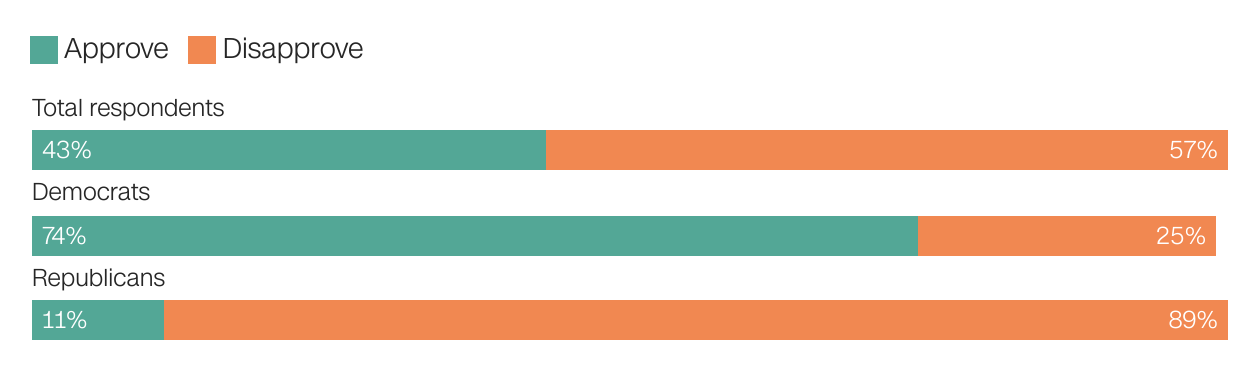 The approval and disapproval responses strongly correlate to political party, with far more Democrats backing Biden's environmental policy.