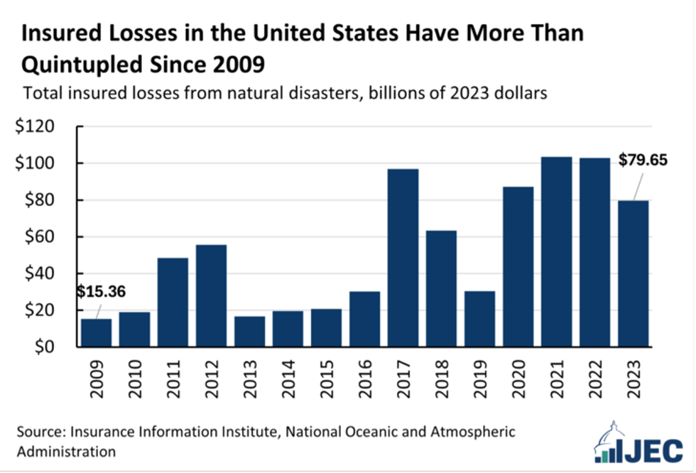 "In the 1980s, the United States experienced an average of one billion-dollar disaster (adjusted for inflation) every four months; now, these significant disasters occur approximately every three weeks," the document continues. "2023 was the worst year for home insurers since 2000, with losses reaching $15.2 billion—more than twice the losses reported in 2022."