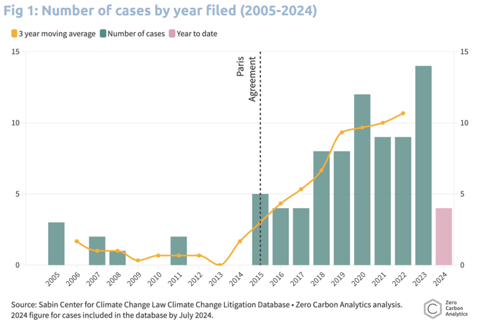 In response to the report, Michael Gerrard, the faculty director of the Sabin Center for Climate Change Law at Columbia University, told The Guardian that there have been a "formidable number of cases" but "none of them have broken through" except those dealing with advertising.