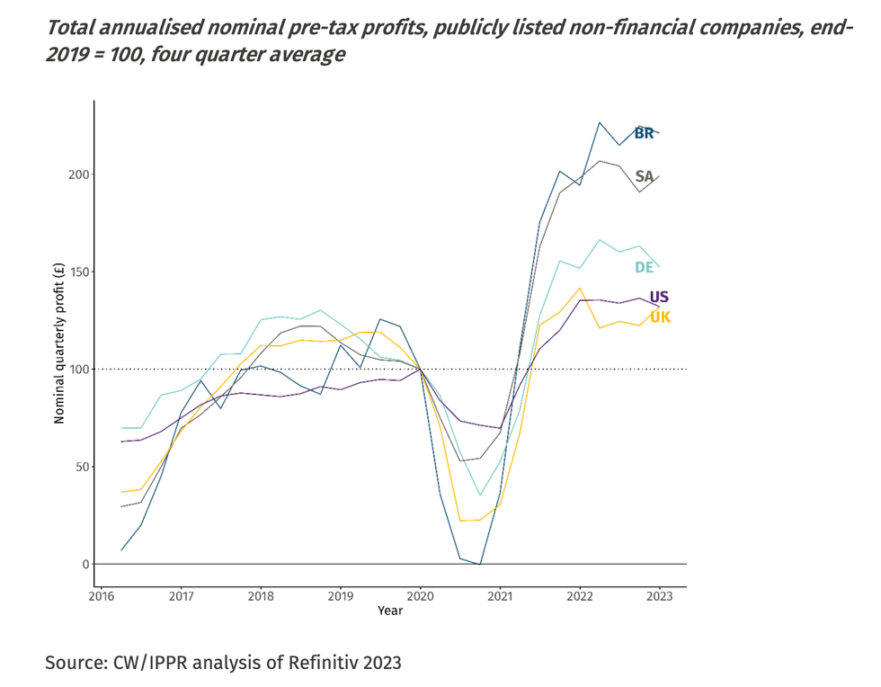 "Our research finds that markets aren't working efficiently, enabling large companies to make profits that likely amplified inflation," said Carsten Jung, a senior economist at IPPR and report co-author. "This has made the cost-of-living crisis worse for most people, and for many smaller firms across the economy."