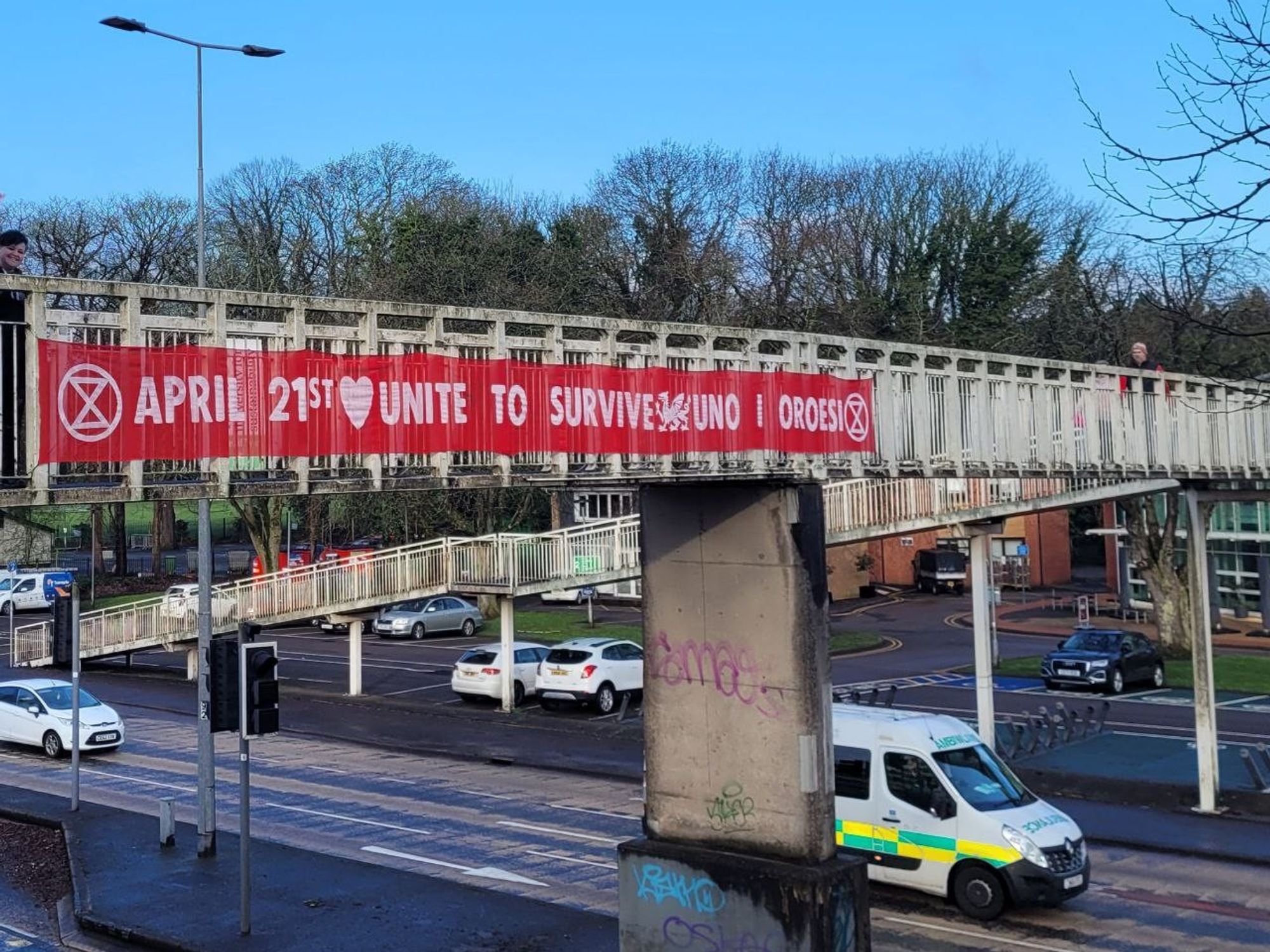"We will not stand by as the planet burns," vowed Olly Baines, a 72-year-old retired chief executive from St. Austell in Cornwall, England. "Our banners on the A30 in Cornwall are calling for all to join us and Unite to Survive on April 21-24 in London, which aims to be the biggest environmental protest ever. There is no time left."