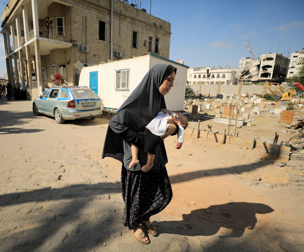 A baby injured by an Israeli airstrike is taken to a hospital in northwest Gaza City on September 8, 2024. (Photo: Dawoud Abo Alkas/Anadolu via Getty Images)
