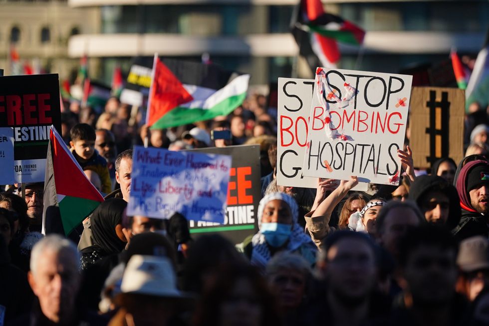 "We march to call for an end to the indiscriminate bombing of civilians and a #CeasefireNOW," PSC director Ben Jamal wrote on social media. "We march in respect of the rights of all to live in freedom and with dignity."