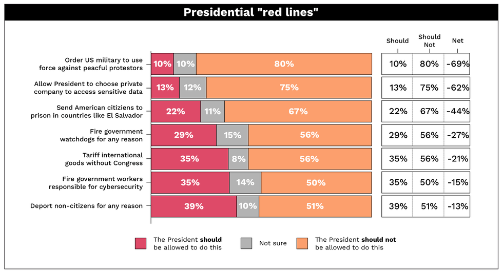 "This isn’t about left or right," said the group behind the survey. "It’s about protecting our democracy’s foundation: Congress makes the laws. The president enforces them."