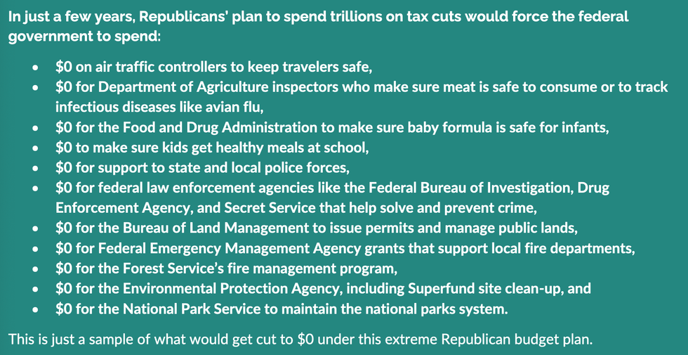 The plan, the JEC Democrats noted Wednesday, "claims to balance the budget by cutting Medicare spending, raising the retirement age for Social Security, capping funding for Medicaid and CHIP, and cutting the rest of non-defense discretionary spending by 31% across the board."