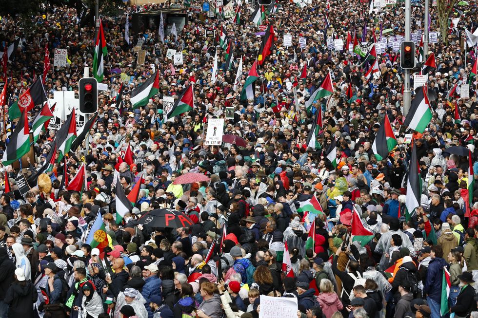 Solidarity actions for the people of Gaza—organized under the banner of "March for Humanity - Save Gaza"—were also held in Melbourne and other cities, but the crowds were largest in Sydney.