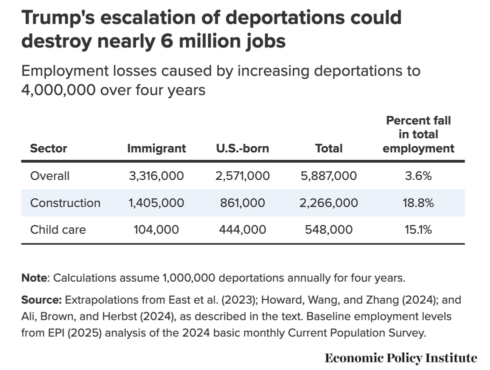 "The Trump administration's deportation goals will cause a major blow to the U.S. labor market," according to a new analysis by the Economic Policy Institute.