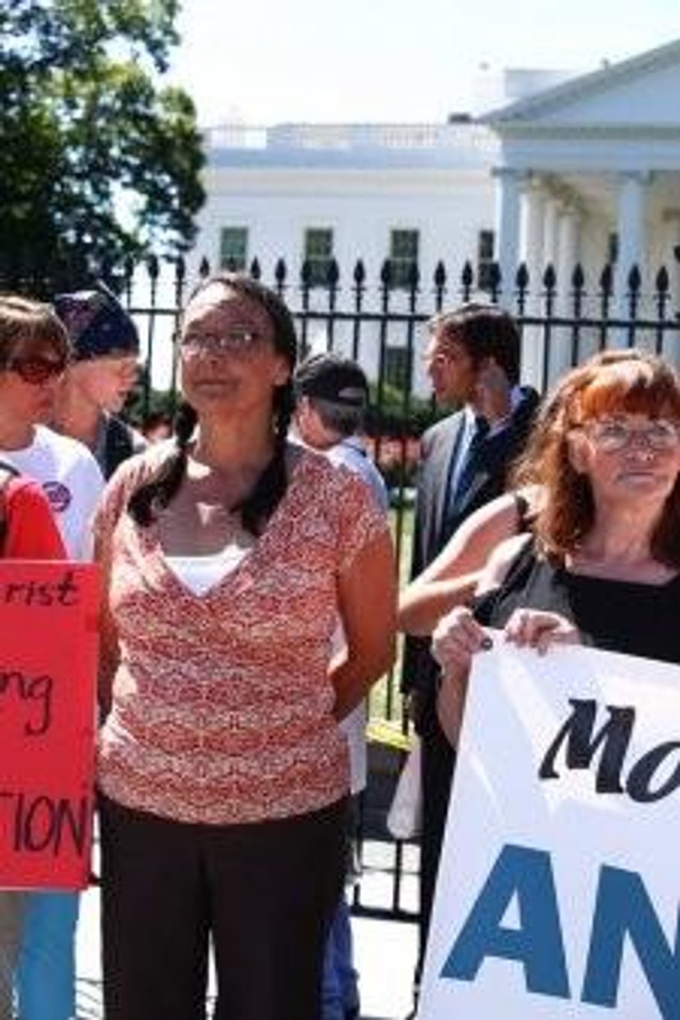 Cardinal and Kidder gathered with a crowd of over 150 people in Lafeyette Square park this morning to hear from environmental author, Bill McKibben, who is spearheading the protests. In an effort to "deter future participants," the DC Park Police had held McKibben and 55 other participants from last Saturday's demonstration in jail for two nights before dropping all charges and releasing them on Monday afternoon. Sunday and Monday's protestors were released after being arrested, taken to a Park Police station, and paying $100 fine for "disobeying a police order."