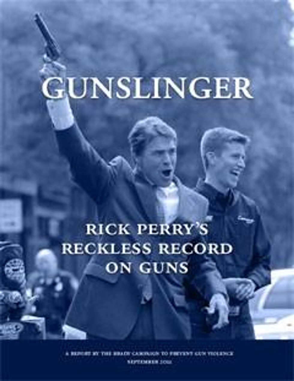 The Brady Campaign today released a report, Gunslinger: Rick Perry's Reckless Record on Guns, to provide the American public greater insight into the views of the Texas governor who recently declared his candidacy for president of the United States.