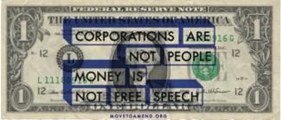 Move to Amend and Cohen plan to kick off the money stamping project in Philadelphia at the Occupy National Gathering on July 4 to encourage "thousands of people to buy rubber stamps and stamp any currency that comes into their possession," Cohen told Yahoo News this week. Later this summer the group will launch a giant traveling money stamping machine to visit communities across the nation. This campaign targets the highly controversial Citizens United v. Federal Election Commission Supreme Court decision that opened the floodgates to unlimited corporate money in elections.
