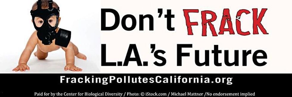 A striking new billboard on Westwood Boulevard warns Los Angeles residents that fracking, acidization and other dirty forms of oil production pollute the air and endanger the health of children and other vulnerable people. The billboard, sponsored by the Center for Biological Diversity, reads "Don't Frack L.A.'s Future" and directs readers to www.FrackingPollutesCalifornia.org.