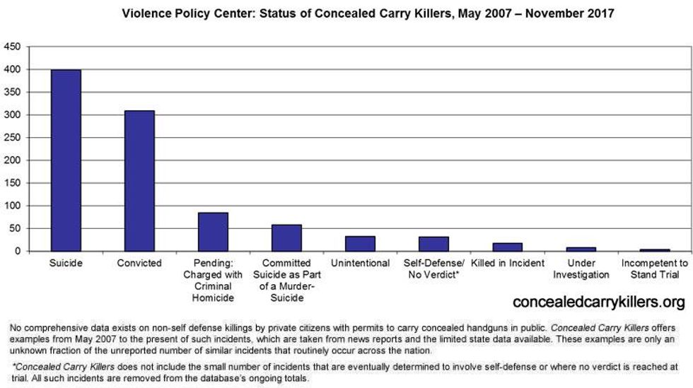 Additional information, including a state-by-state breakdown of fatal incidents involving concealed carry killers, is available at concealedcarrykillers.org. To review all deaths involving concealed carry killers, click on "Total People Killed by Concealed Carry Killers."