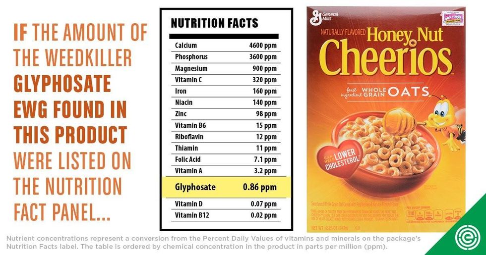 "If General Mills and Quaker refuse to remove glyphosate from these children's cereals, then the companies should at least let parents know how much of this toxic weed killer they may be feeding their kids," said EWG President Ken Cook. "When there is more weed killer linked to cancer than essential vitamins in kids' cereal, parents and all consumers have the right to know."