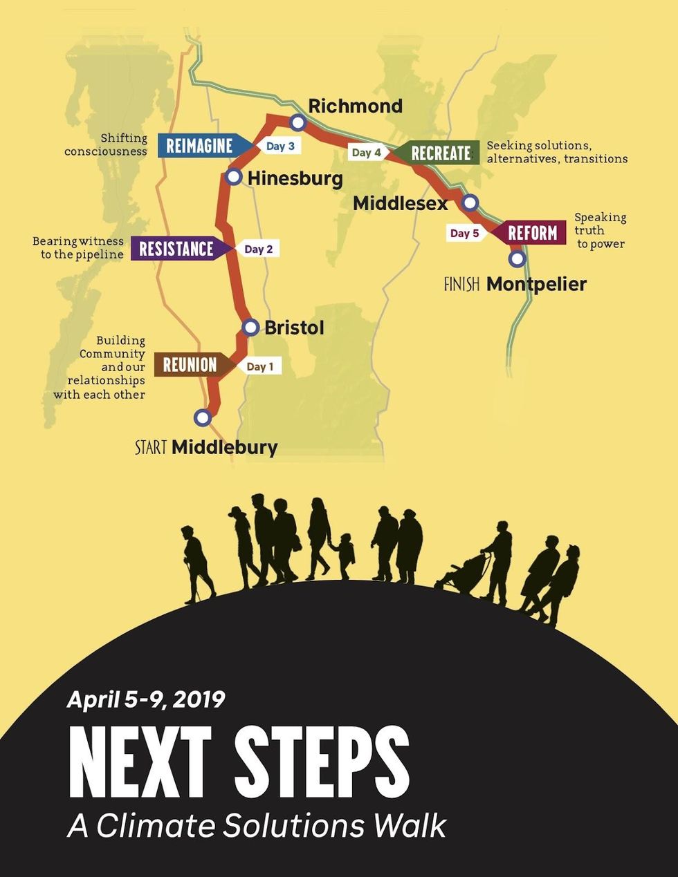 Among the organizations supporting the Next Steps walk and call for climate action are Migrant Justice, Sierra Club-Vermont Chapter, the Vermont Racial Justice Alliance, and Sunrise Movement Middlebury College and UVM. According to 350Vermont Director Maeve McBride, the huge support for the walk is because, "We're walking to center this situation in a new way, both for ourselves and the broader community. We're in an emergency, a climate emergency, a justice emergency. At this moment, the communities along the Addison County pipeline are at risk because of safety violations by Vermont Gas. At this moment, youth are striking across Europe, the Green New Deal is shining brightly, and people across Vermont are seeking fair and equitable alternatives."