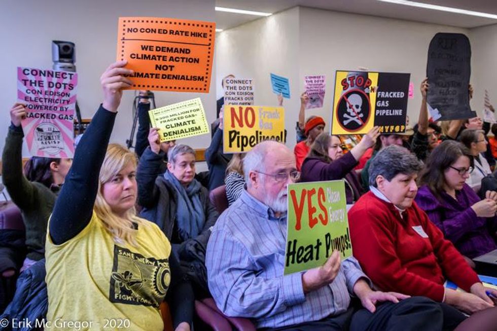 Yesterday, Thursday, January 16, 2020, the biggest public turnout of New York advocates, businesses, families, farmers, students, health professionals, and more, attended the Public Service Commission's (PSC) monthly meeting and stood up in outrage as they awarded Consolidated Edison almost a billion dollars per year for the next three years, funded by New York residents, to construct 3 new fracked gas pipelines in Westchester/Bronx, Queens and Manhattan and replace old pipeline with new pipeline.