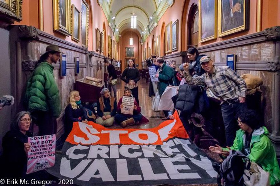 Following the PSC meeting New Yorkers held a brief sit-in protest at the Hall of Governors to highlight Governor Cuomo's complicity in the approval of fracked gas infrastructure and failure of climate leadership to get New York off gas in a time frame climate science and now State climate law demands.
