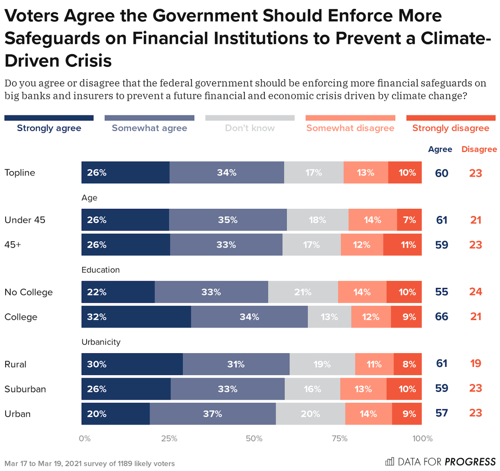 Polling from Data for Progress finds that climate financial reforms are overwhelmingly popular among voters across different age groups, education levels, and geographies.