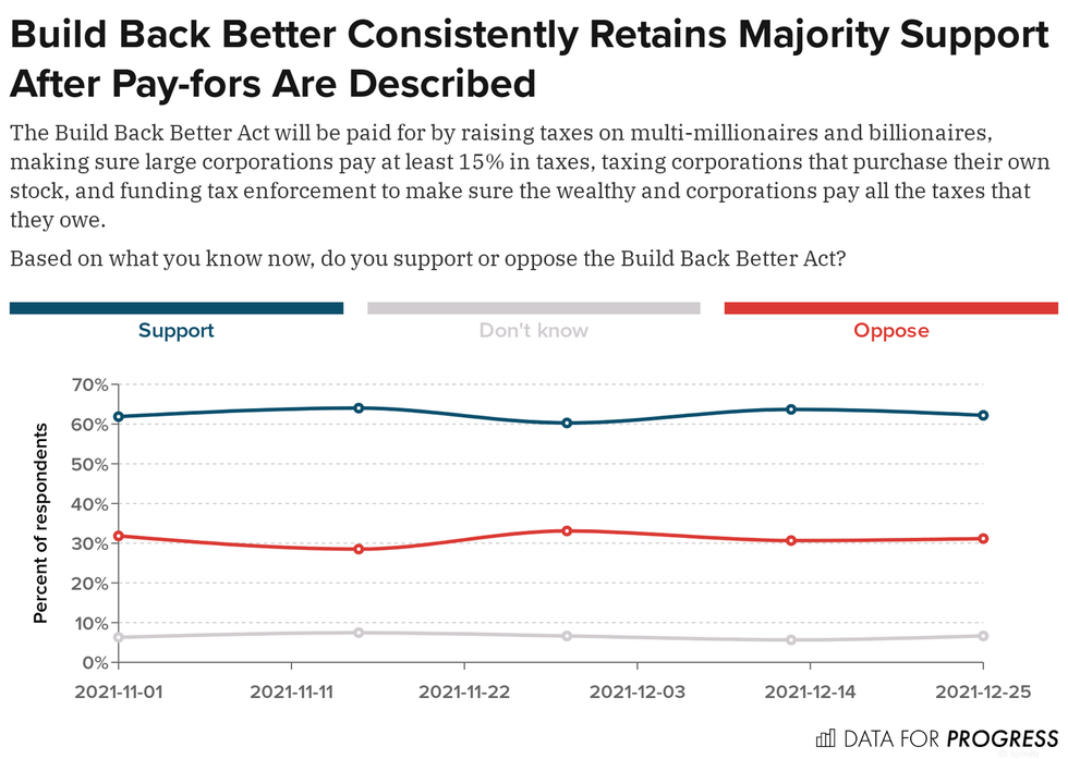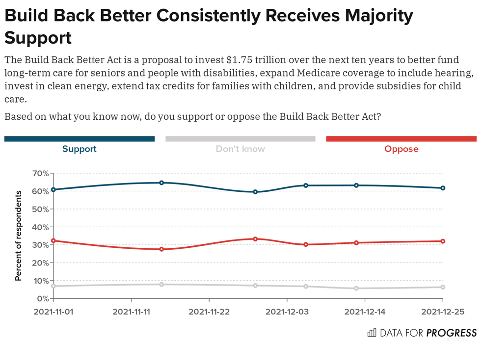 Despite key senators holding up the passage of the Build Back Better Act, new polling from Data for Progress finds that Americans consistently support the bill.