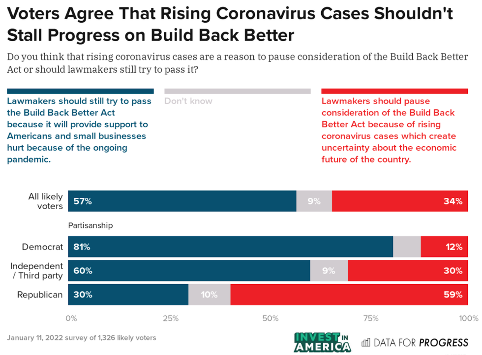 57% of voters, including 81% of Democrats and 60% of Independents, want Congress to pass the Build Back Better Act to support Americans and small businesses hurt by the pandemic.
