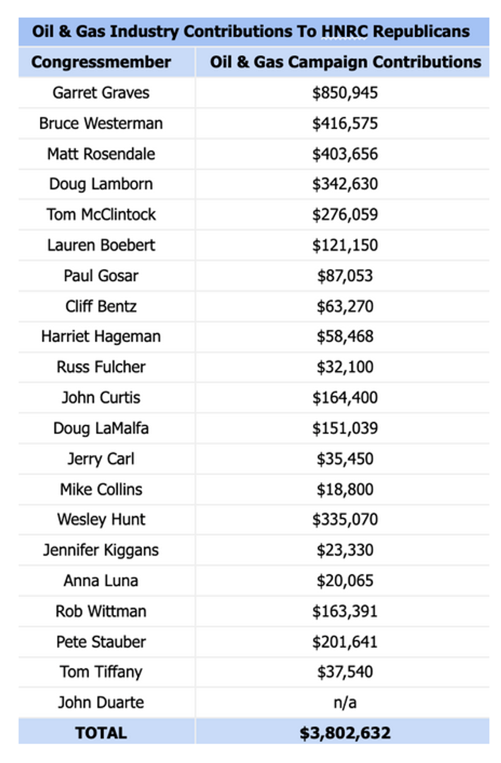 Big Oil Gave $3.8 Million to Anti-Conservation Extremists on House Natural Resources Committee