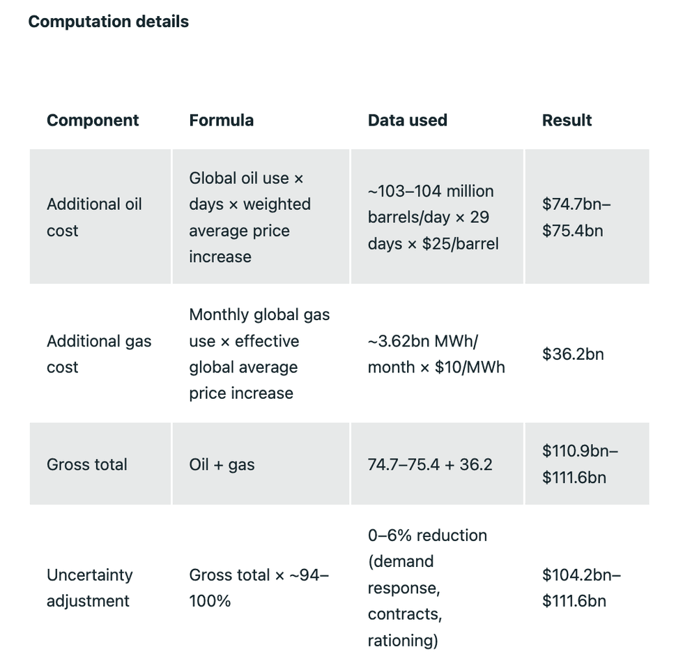 To identify the oil and gas price delta, the analysis used various data sets, including data of the International Energy Agency, TradingEconomics and regional gas price benchmarks; the price in the week ahead of the outbreak of the war as the baseline for comparison, which likely slightly underestimates the price shock as trading prices had already modestly increased due to the anticipation of a possible conflict.