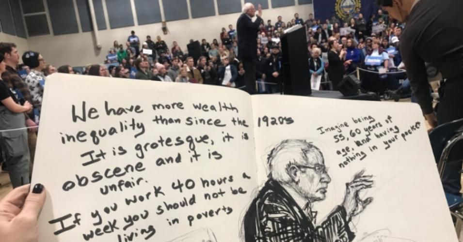 "For 40 years we've endured class warfare from above. And for 40 years Bernie Sanders was there fighting back." —John Cusack, actor and activist"We are here saying 'Not me, Us,'" Klein said during the Exeter rally on Saturday, "because we know that even if the White House has turned into the set of some twisted, never-ending, nuclear-armed reality TV show—this is, in fact, not a show. This is reality. And we need a real human being in the White House who gets the stakes—the unfathomable stakes—of the moment that we are living; that gets it in their bones. And that person is Senator Bernie Sanders."