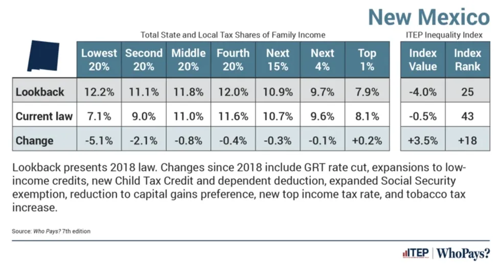 Tax changes made in New Mexico since 2018 led the state to jump 18 spots in ITEP’s Tax Inequality Index to the No. 9 least regressive tax code, the biggest positive change of all the states. These policy changes included the expansion of low-income credits like the Earned Income Tax Credit, the creation of a new Child Tax Credit, and tax increases on investment income and high-earning residents. Without those and other changes made since 2018, New Mexico would currently have the 25th most regressive tax system in the country.