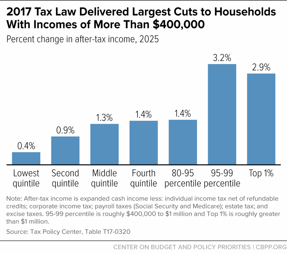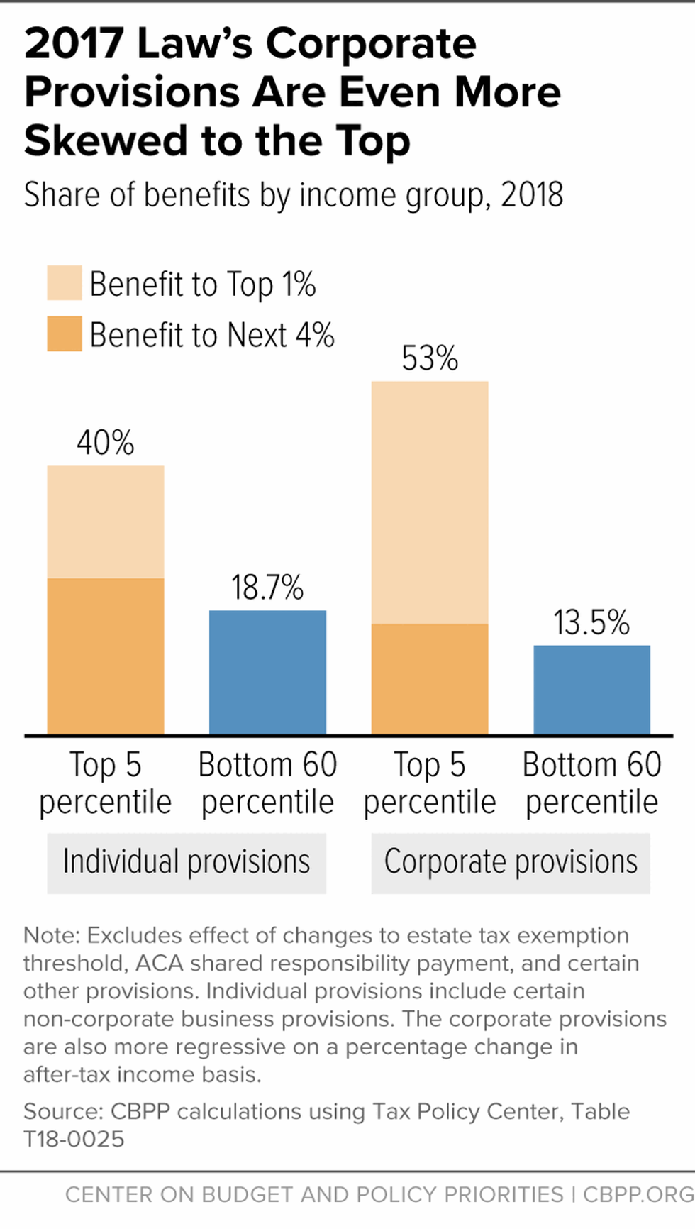The 2017 tax law’s tilt to the top reflects several costly provisions that primarily benefit the most well-off: