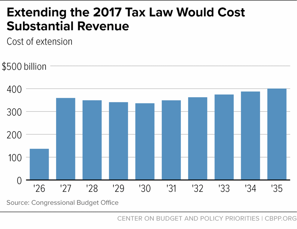 Revenues need to rise. Yet making the 2017 law’s individual and estate tax cuts permanent would cost another roughly $3.4 trillion from 2026 to 2035, or roughly $350 billion a year beginning in 2027.[33] (See Figure 5.) Lawmakers should reject this costly policy mistake.