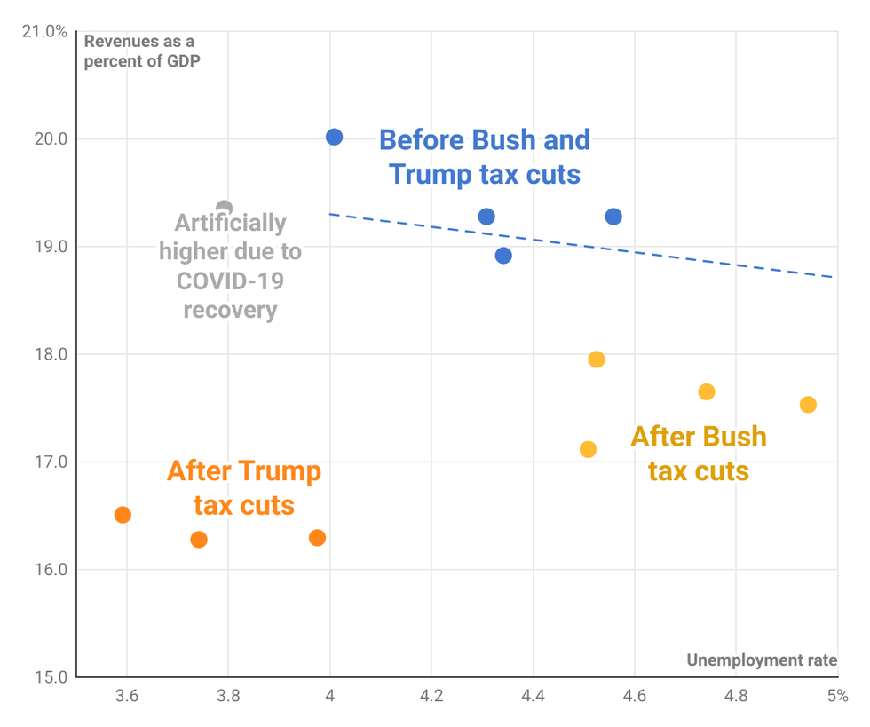 The Bush and Trump tax cuts broke our modern tax structure: Revenues are significantly lower and no longer grow much with the economy