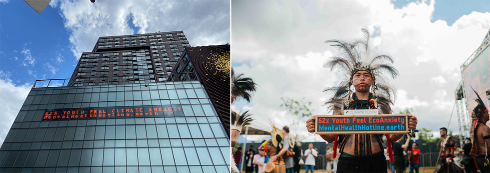 This hotline connects those in need to a wide variety of support resources - from helplines and climate cafes to online forums and specialized mental health services tackling climate-related issues. This network spans the globe, drawing on resources from organizations like the Climate Psychology Alliance, Force of Nature, Good Grief Network, Climate Awakening, Gen Dread, and Psychologists for the Future. You’ll find the hotline displayed on our monolithic Climate Clock in Union Square, New York City, and echoed in the hundreds of handheld Climate Clocks around the world, reaching from teachers in DRC and Italy to youth activists in Turkey and Tokyo and extending to activist organizations in Ghana, the Netherlands, Kosovo, and Brazil.