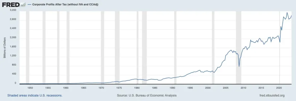 Former Labor Secretary Robert Reich recently published in his excellent Substack newsletter a graphic from the St. Louis Fed showing how corporate profits have exploded over the past few decades.