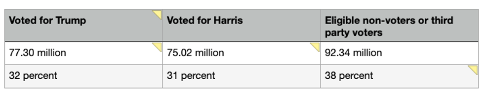 It was “none-of-the-above” that won a landslide in the 2024 election; 38 percent of eligible voters either cast a vote for a third-party candidate or they didn’t vote for president.