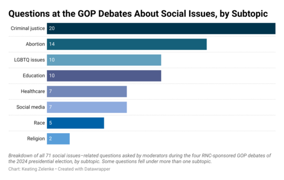 The economy is the top concern for voters overall, but especially for Republican voters (Pew, 6/21/23, Redfield & Wilton, 12/8/23), making the relative dearth of economy-related questions surprising.