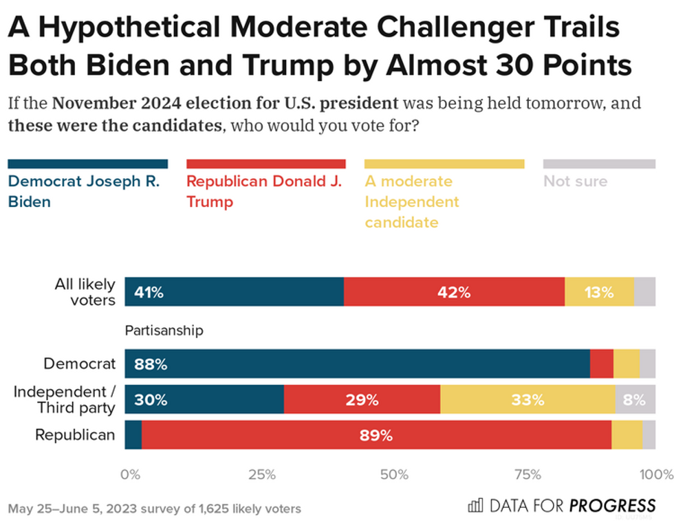 The 2024 presidential election is already shaping up to be one of extreme consequences. The leading Republican contender for president has a record of undermining democracy and pandering to the ultra-right-wing fringes of the Republican Party. This latest Data for Progress poll underscores the danger of a No Labels candidate who could not only help get Trump re-elected but would likely fail to secure even 15% of the vote for president.