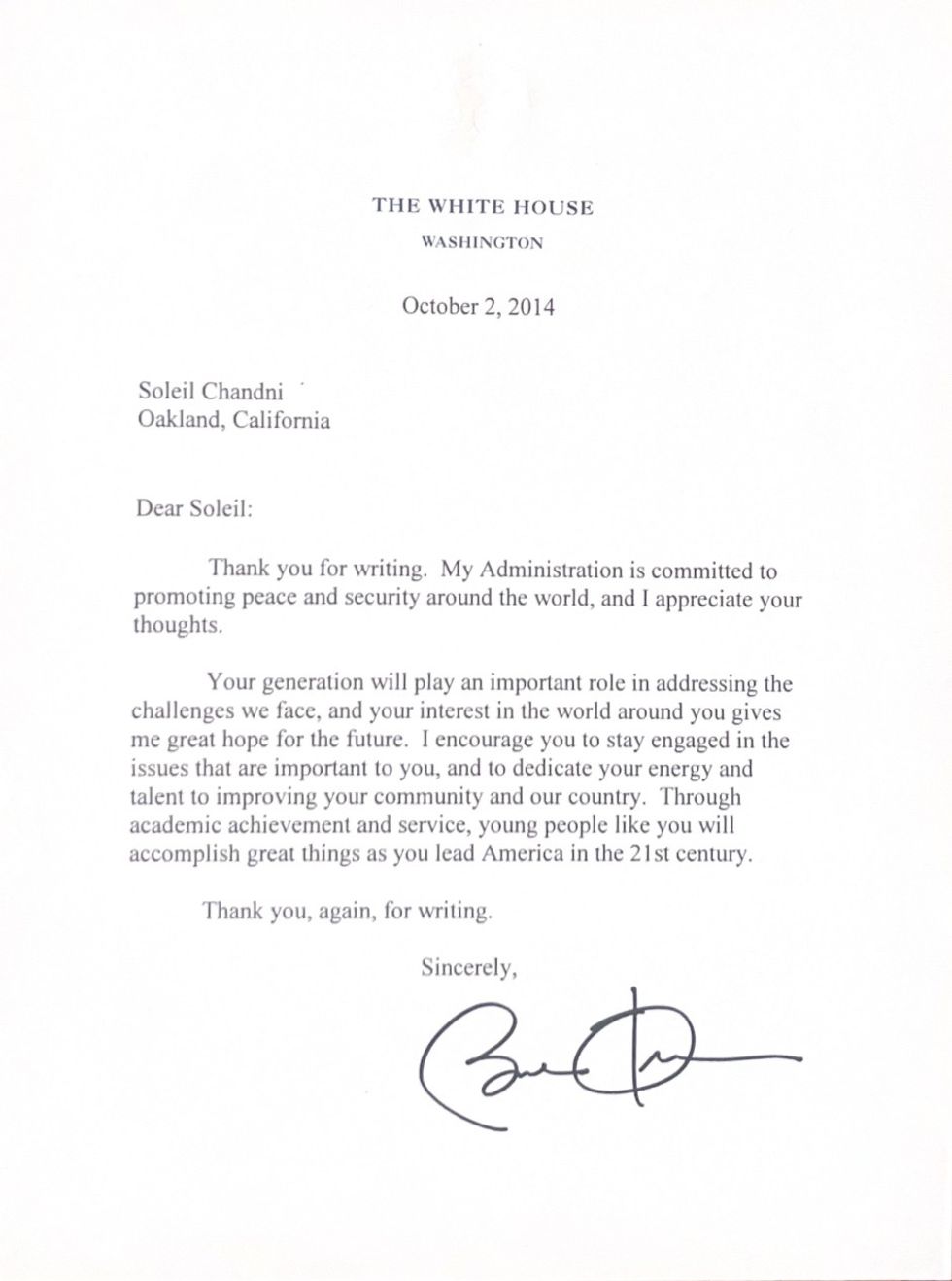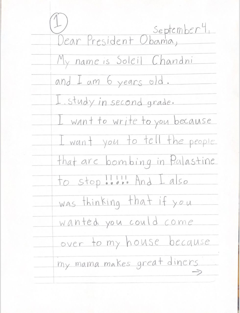 My six-year-old self loved to write; I crafted a very misspelled letter, though a letter nonetheless, to President Barack Obama. The media I had caught a glimpse of kept flashing in my head: bloodied children, rubble, screaming. I believed that the president was unaware, or else he would have done something about it. To my surprise, I received a response from the White House.