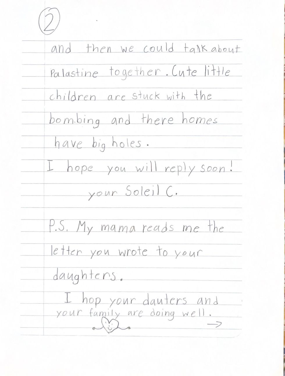 The summer of 2014, newspapers on the kitchen table and images flashing on the television caught my attention. My young eyes and ears could not fully comprehend what was happening; all I saw was children like me being bombed. Worried for Mona’s Sitti, I wrote a letter to the President of the United States.