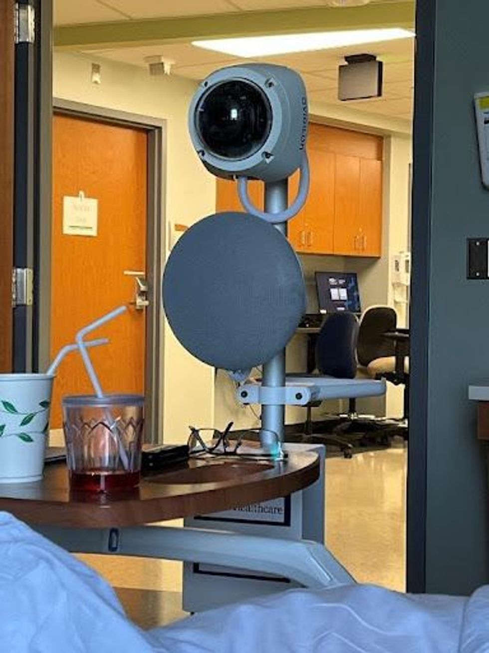 Some days we didn’t see a nurse for entire shifts—and only for medication delivery and scanning the bar codes for payment. This is also your patient technician. Oh, wait, techs are in short supply, and the robot camera doesn’t do hands-on patient care. This camera isn't even your fall-risk protection. The camera watches as you fall to record your missteps and guard against liability.