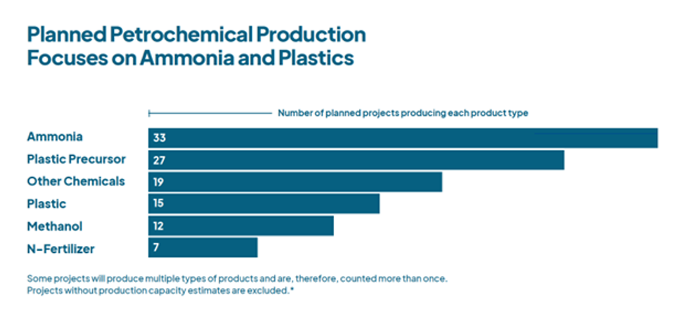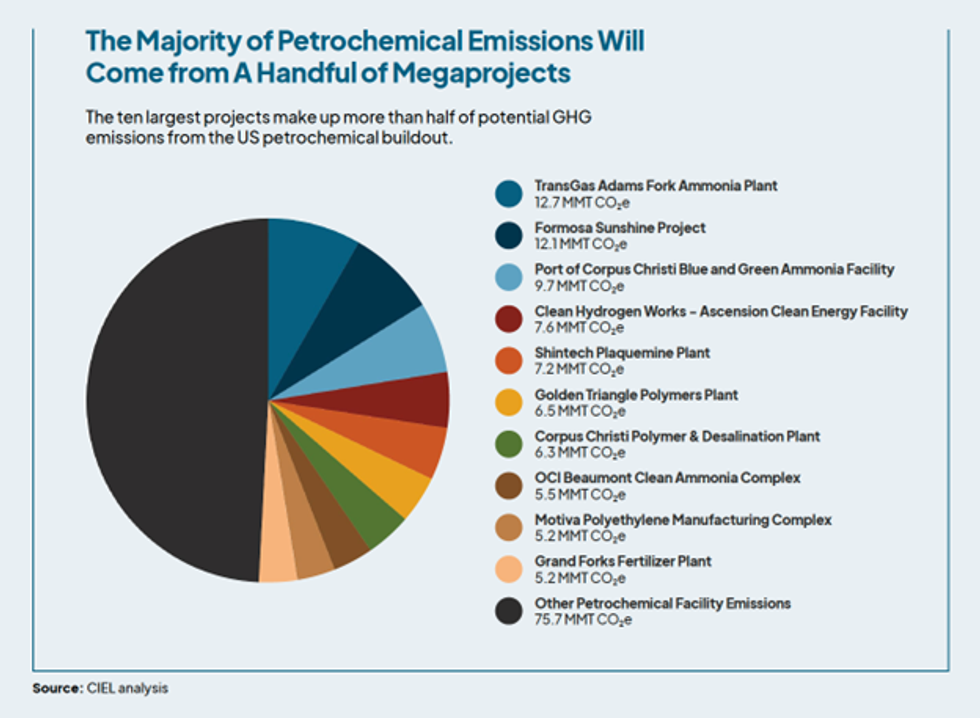 One of the most alarming revelations from our analysis is that just 10 megaprojects account for half of the potential emissions from the petrochemical buildout. The fate of just a handful of projects will have a massive impact on the U.S.’ ability to meet its climate targets.
