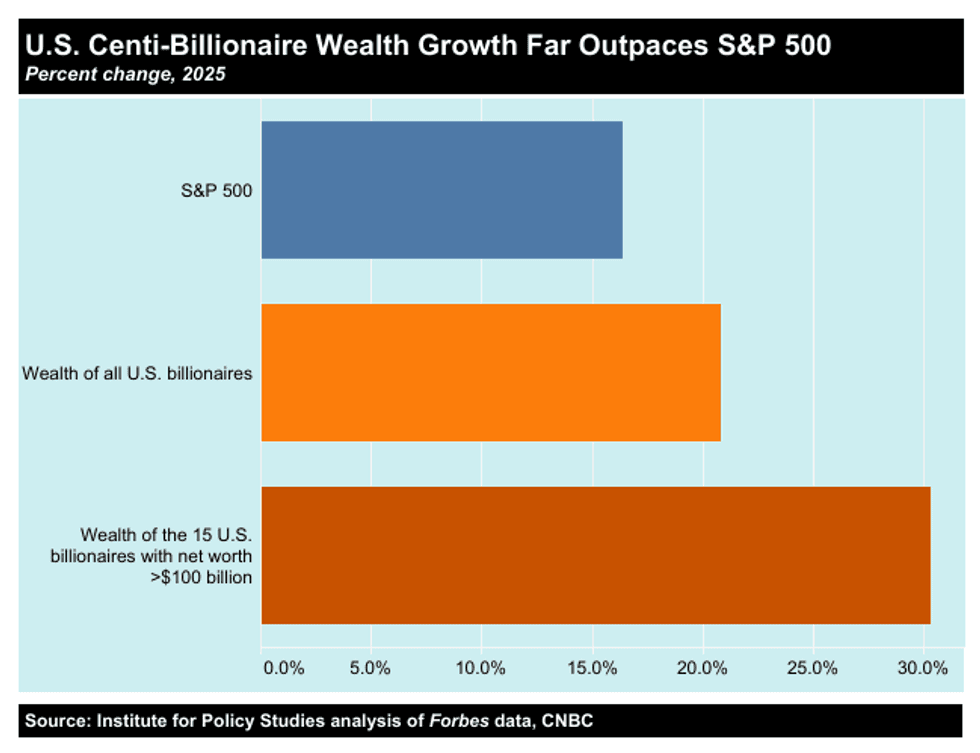 And, according to a new Institute for Policy Studies analysis of data from the Forbes real time billionaire list, the combined wealth of that 12-figure club grew from $2.4 trillion to $3.1 trillion over the course of 2025.