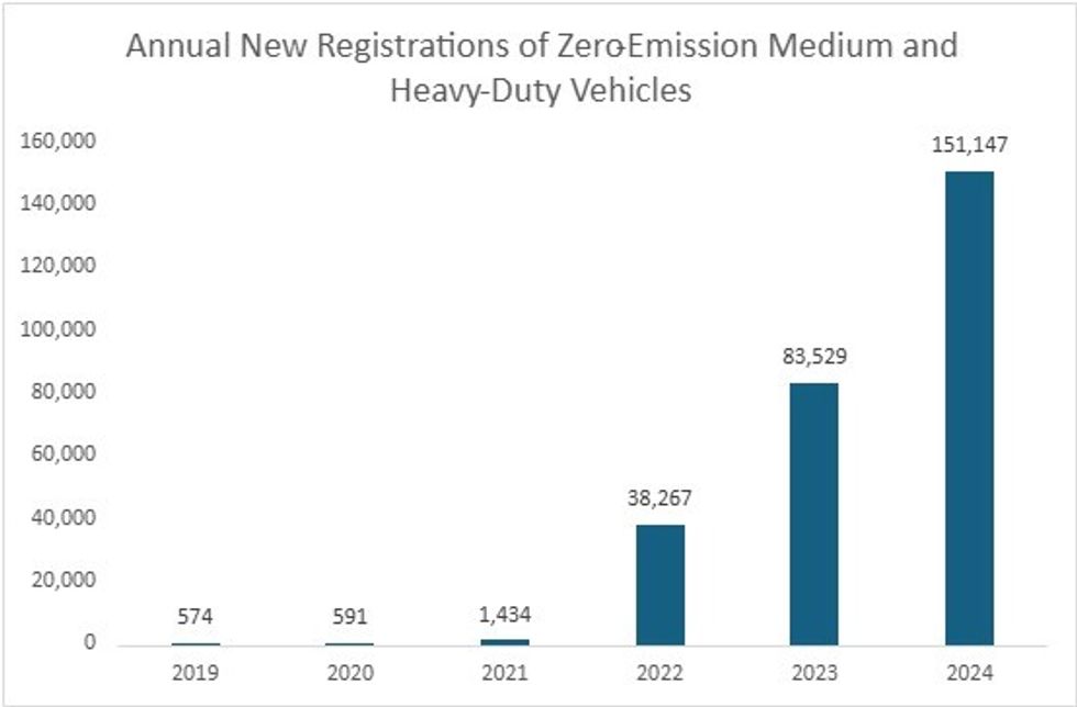 “The momentum behind zero-emission trucks has swelled over the past several years, with registrations of electric trucks reaching record levels each year. In 2019, there were fewer than 1,000 new zero-emission trucks, buses, and vans registered in the United States.”